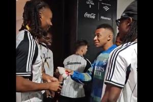 視頻中,姆巴佩先是與圖拉姆寒暄,隨后看見圖拉姆手中有一個(gè)拉布布,立馬拿起來(lái),一臉不可置信。