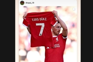 就在那張照片拍攝前不久的2023年10 月底,路易斯-迪亞斯的父母在他們的祖國哥倫比亞被綁架。為了表示支持,若塔在10月29日利物浦對陣諾丁漢的聯(lián)賽(3-0)中打入首球后,舉起了隊(duì)友兼好友的球衣。