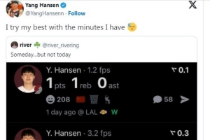 某網(wǎng)友在社媒發(fā)文表示賽季至今的5場(chǎng)比賽小楊得分依次是2分、2分、2分、1分、2分,并配文寫(xiě)道:“我知道他會(huì)打出來(lái),但不是現(xiàn)在!”。假冒楊瀚森賬號(hào)則在社媒上回復(fù)道:“我會(huì)在能獲得的時(shí)間里用盡全力?!边@一回復(fù)被“Sporting News”的編輯誤以為是楊瀚森本尊于是他們撰寫(xiě)了新聞并發(fā)出(如下所示)。