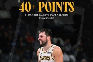 體育資訊11月2日訊 湖人官方曬出東契奇40+得分海報,并配文寫道:“開季連續(xù)3場拿下40+分的球員:盧卡-東契奇、威爾特-張伯倫?!?/p>