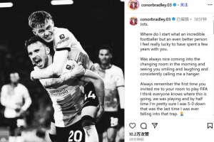 布拉德利悼念若塔:升上一線(xiàn)隊(duì)后我是你的跟屁蟲(chóng) 我們終會(huì)重逢