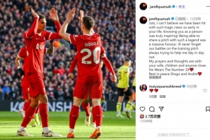 他身披20號(hào)球衣??安息吧,迪奧戈和安德烈?!?/p> 利物浦前鋒若塔因車禍離世,年僅28歲